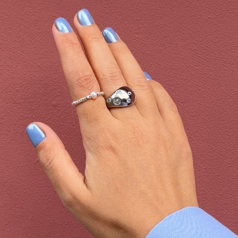 Жемчужная втирка — тренд, который особенно хорошо смотрится именно на коротких ногтях, придавая им стильный и утонченный вид. С помощью специального порошка можно создать эффект перламутрового сияния, который выглядит очень современно и ярко.