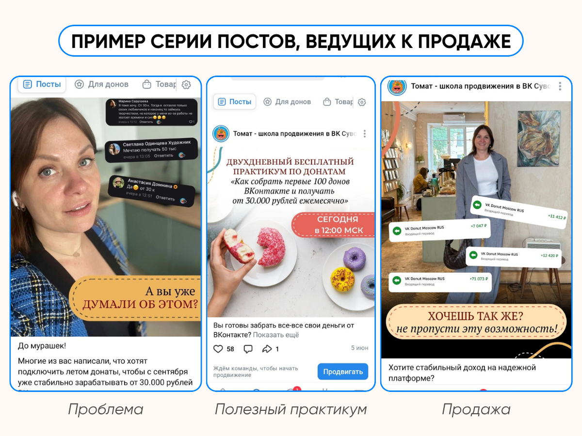 Такая последовательность публикаций на протяжении 3-4 дней или недели поможет сделать так, чтобы продающие посты не проваливались по охватам, аудитория ждала каждый ваш пост и активно на него реагировала.