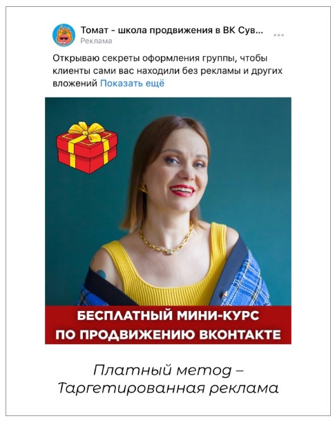Вы можете дать какую-то пользу аудитории других сообществ. Это может быть подарок, успешный кейс, чек-лист по уходу и т.д.