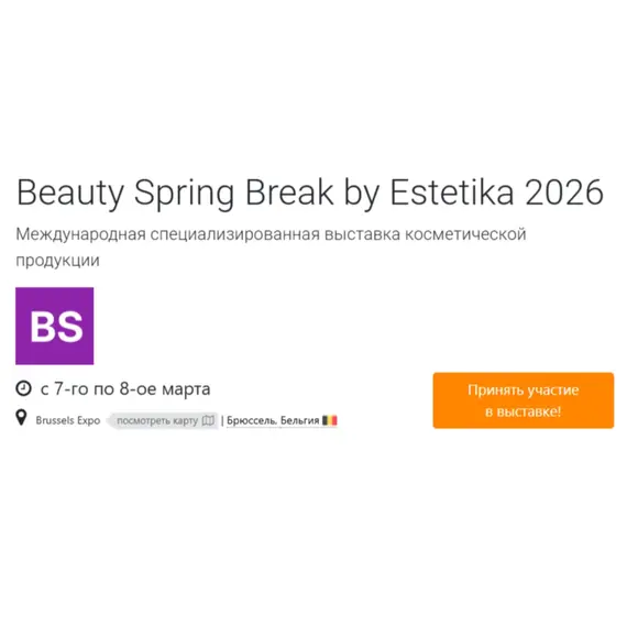 Международная специализированная выставка косметической продукции Beauty Spring Break by Estetika 2026, 7-8 марта, г. Брюссель (Бельгия)