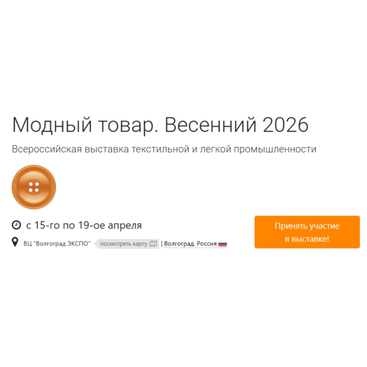 Всероссийская выставка текстильной и легкой промышленности Модный товар. Весенний 2026, 15-19 апреля, г. Волгоград