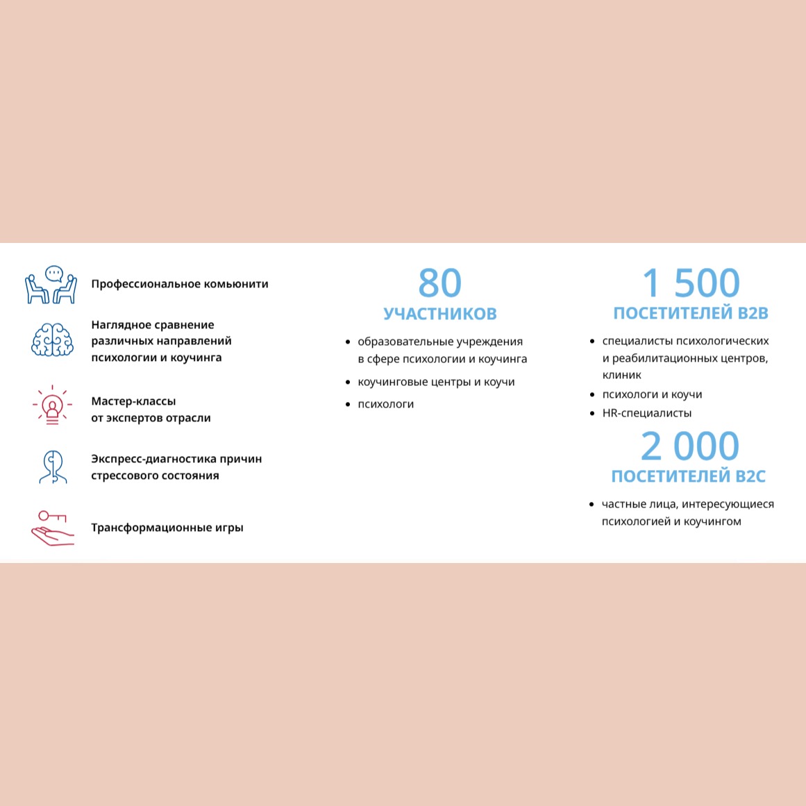 1500 посетителей B2B: специалисты психологических и реабилитационных центров, клиник, психологи и коучи, HR-специалисты;