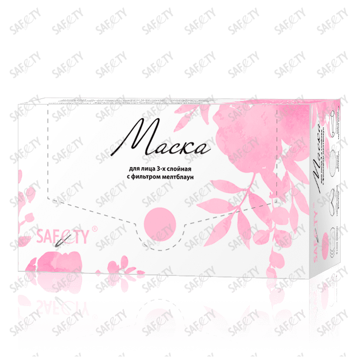 Маска одноразовая 3-х слойная SAF&TY, фильтр мелтблаун, розовая (50 шт.)