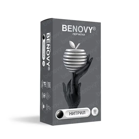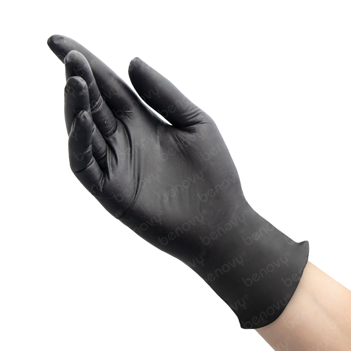 Перчатки нитриловые, чёрные Benovy Nitrile Chlorinated BS (Китай; 50 пар)