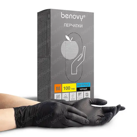 Перчатки нитриловые, черные Benovy Nitrile Chlorinated (Малайзия; 50 пар)