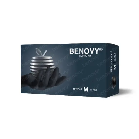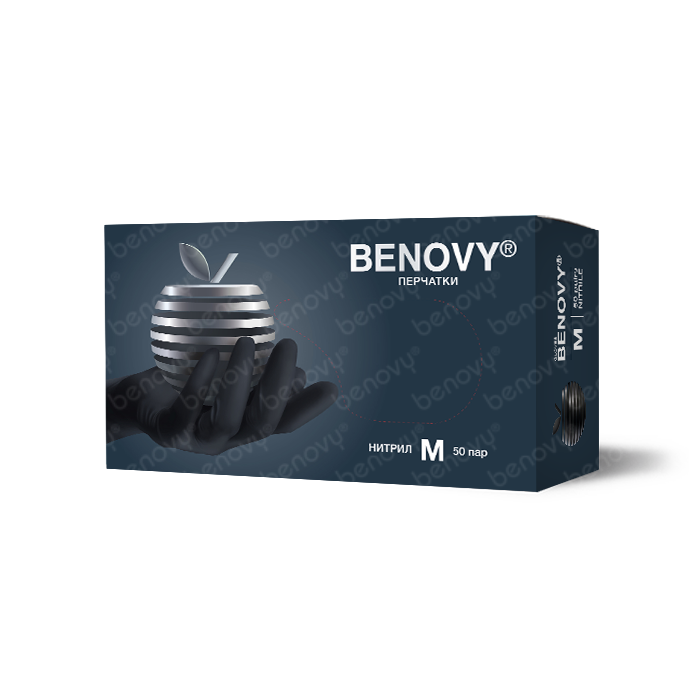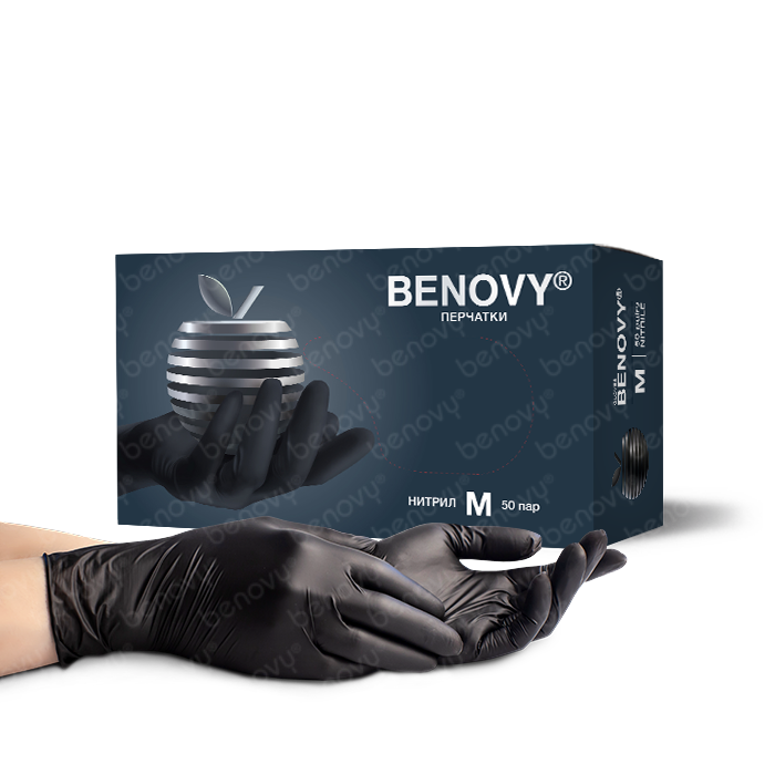Перчатки нитриловые, черные Benovy Nitrile MultiColor BS (Китай; 50 пар)