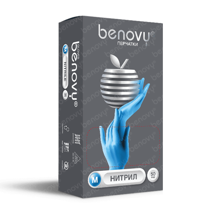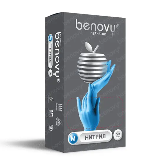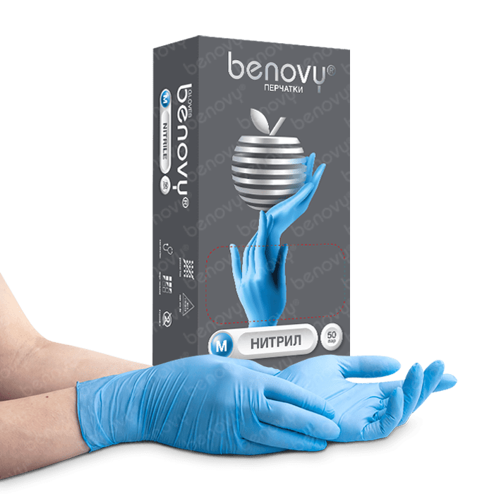 Перчатки нитриловые, голубые Benovy Nitrile Chlorinated (Малайзия; 50 пар)