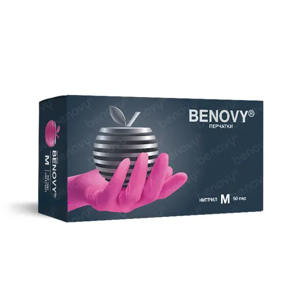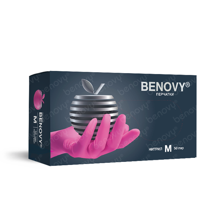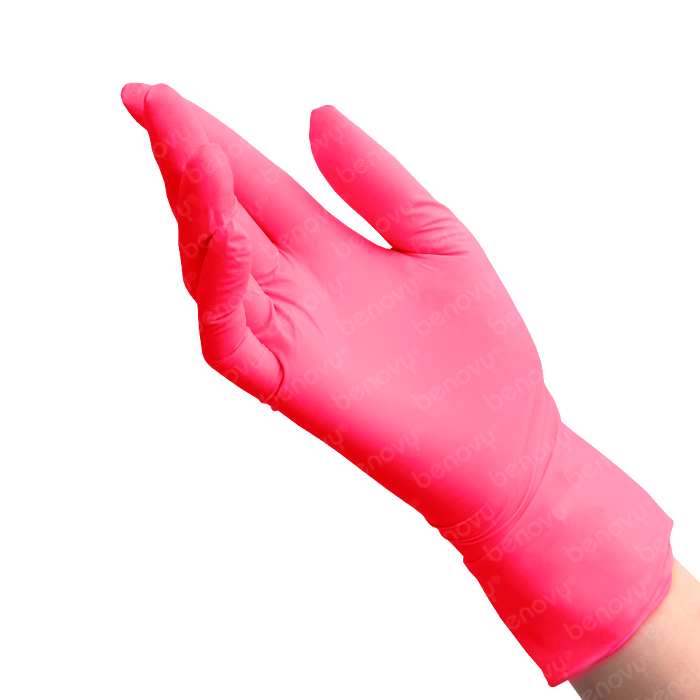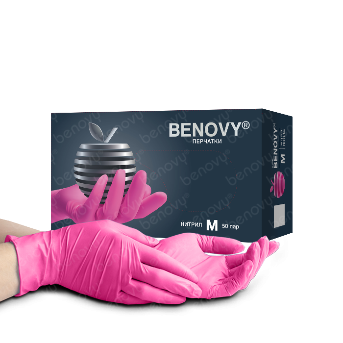 Перчатки нитриловые, розовые Benovy Nitrile MultiColor BS (Китай; 50 пар)