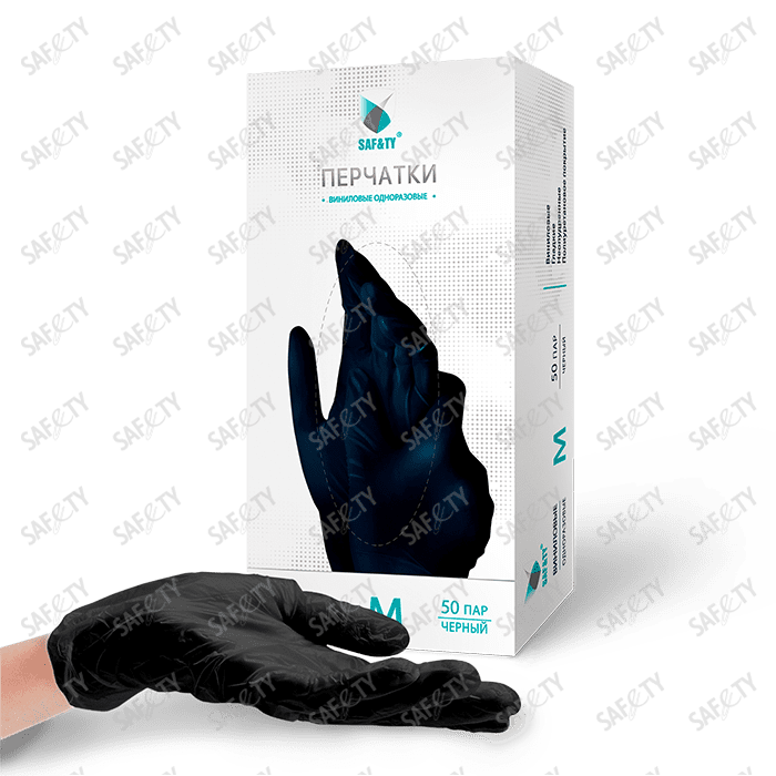 Виниловые перчатки SAF&TY черного цвета являются изделием санитарно-гигиенического назначения. Предназначены для одноразового использования. Не являются средством защиты от опасных химических соединений. Предназначены для для проведения обследований, диагностики и уходе за пациентами.