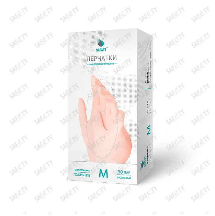 Перчатки виниловые, прозрачные SAF&TY Vinyl (Китай; 50 пар)