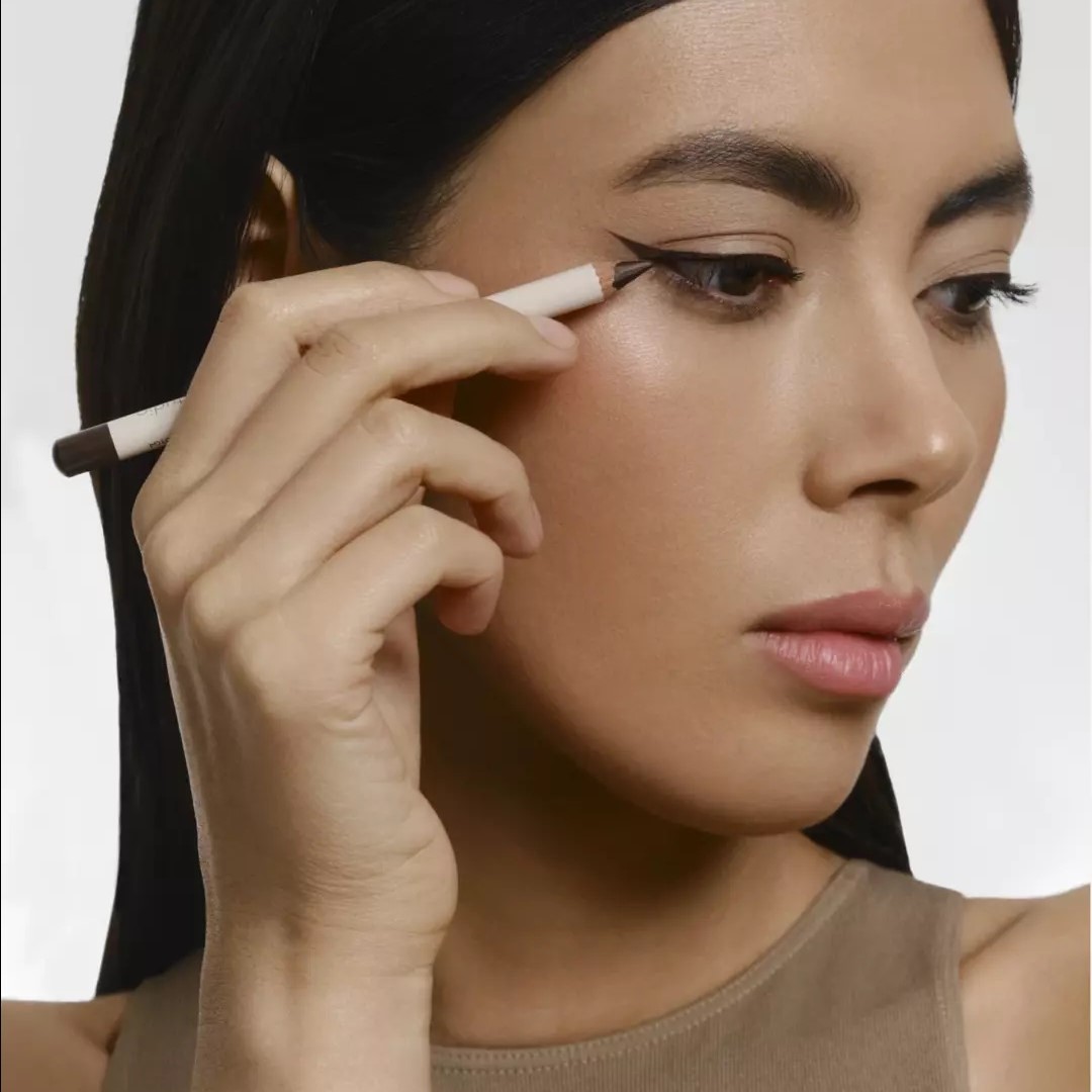 1. При прямо смотрящих глазах нанесите карандаш вдоль линии роста верхних ресниц от середины века до внешнего уголка глаза.