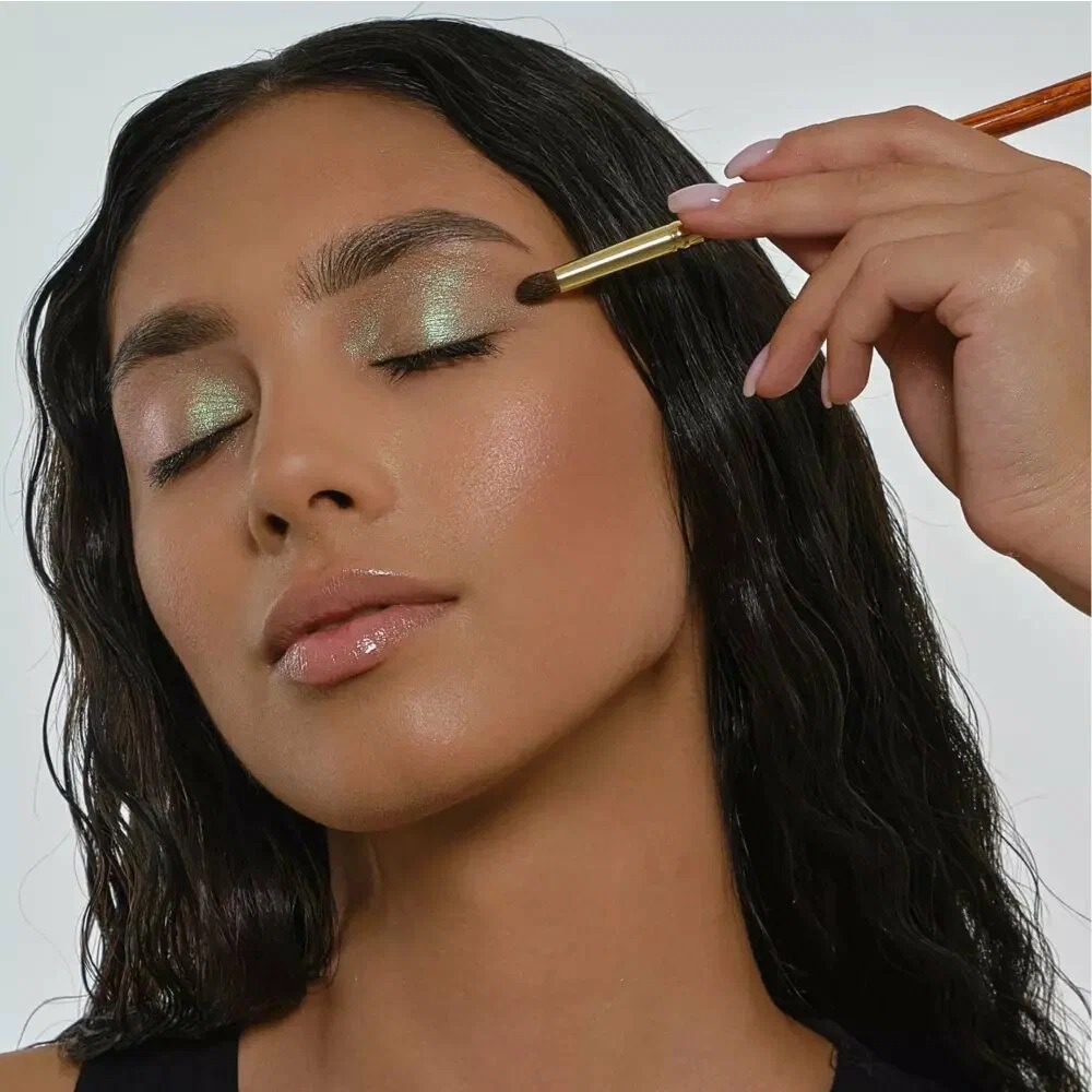 1. Нанесите тени-спарклы на кремовую текстуру (консилер или жидкие тени) пальцем или плоской кистью.⠀