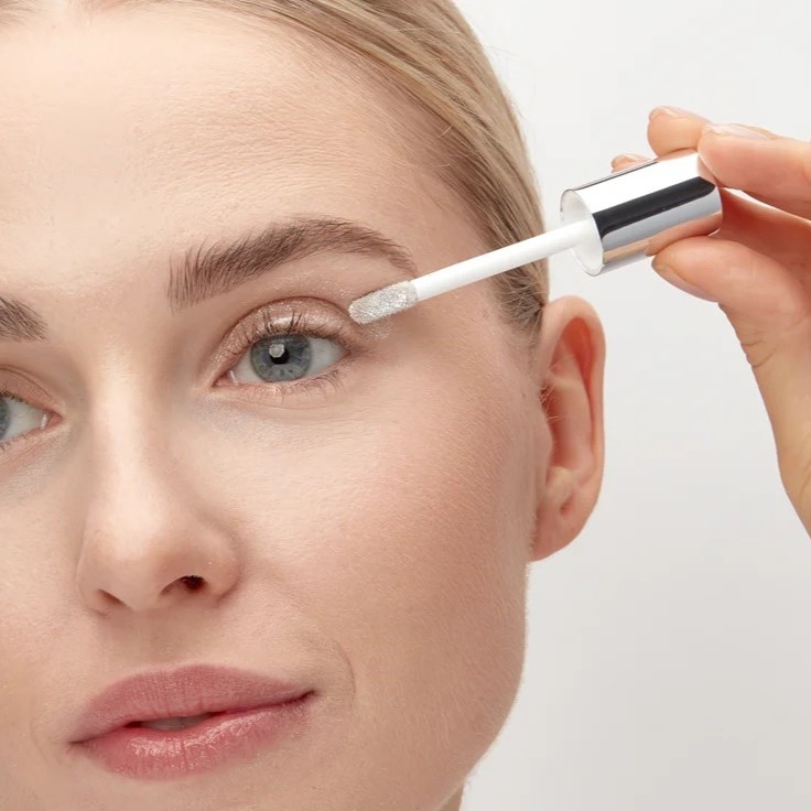 Нанесите небольшое количество продукта на веки, растушуйте кистью.