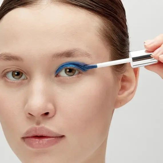 Нанесите небольшое количество продукта на веки, растушуйте кистью.