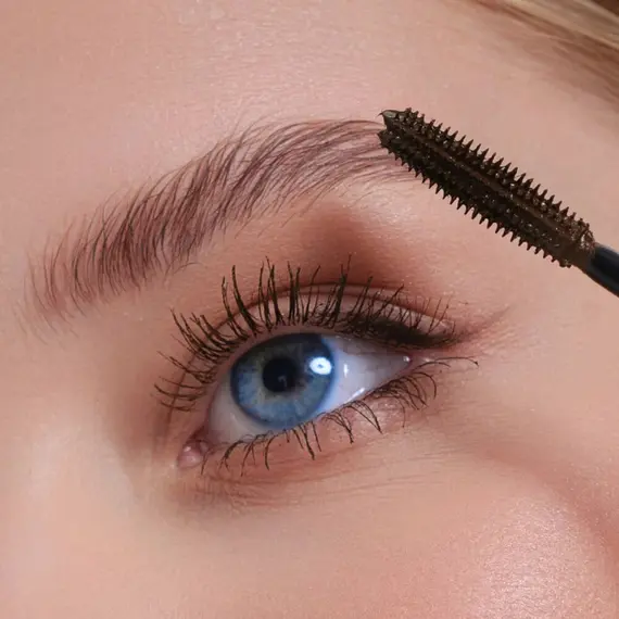 Равномерно нанесите тушь на ресницы по направлению от основания до кончиков или поверх черной туши.