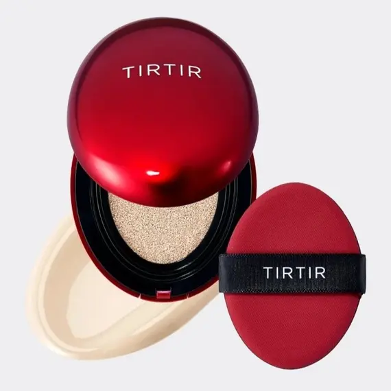 Стойкий кушон TIRTIR Mask Fit Red Cushion — хит бренда, который маскирует морщины, расширенные поры и покраснение, скрывает пигментные пятна и тёмные круги, фиксируется на коже до 72 часов. Выравнивает тон и придаёт естественное сияние, предотвращает жирный блеск. Не утяжеляет макияж и не создаёт эффекта маски. Для качественной маскировки несовершенств кушон обладает довольно плотным покрытием, которое удобно тушевать на крышке кейса, используя её как палитру. Это помогает не переборщить со средством и легко распределить его по коже тонким слоем. Продукт оказывает антиоксидантное действие и дополнительно защищает от солнца, увлажняет и смягчает кожу.