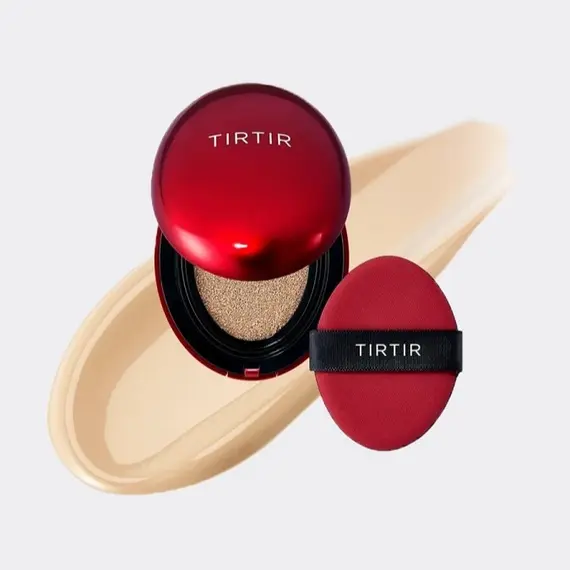 Стойкий кушон TIRTIR Mask Fit Red Cushion — хит бренда, который маскирует морщины, расширенные поры и покраснение, скрывает пигментные пятна и тёмные круги, фиксируется на коже до 72 часов. Выравнивает тон и придаёт естественное сияние, предотвращает жирный блеск. Не утяжеляет макияж и не создаёт эффекта маски. Для качественной маскировки несовершенств кушон обладает довольно плотным покрытием, которое удобно тушевать на крышке кейса, используя её как палитру. Это помогает не переборщить со средством и легко распределить его по коже тонким слоем. Продукт оказывает антиоксидантное действие и дополнительно защищает от солнца, увлажняет и смягчает кожу.