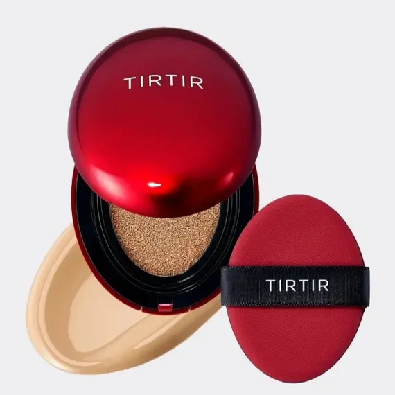 Стойкий кушон TIRTIR Mask Fit Red Cushion — хит бренда, который маскирует морщины, расширенные поры и покраснение, скрывает пигментные пятна и тёмные круги, фиксируется на коже до 72 часов. Выравнивает тон и придаёт естественное сияние, предотвращает жирный блеск. Не утяжеляет макияж и не создаёт эффекта маски. Для качественной маскировки несовершенств кушон обладает довольно плотным покрытием, которое удобно тушевать на крышке кейса, используя её как палитру. Это помогает не переборщить со средством и легко распределить его по коже тонким слоем. Продукт оказывает антиоксидантное действие и дополнительно защищает от солнца, увлажняет и смягчает кожу.