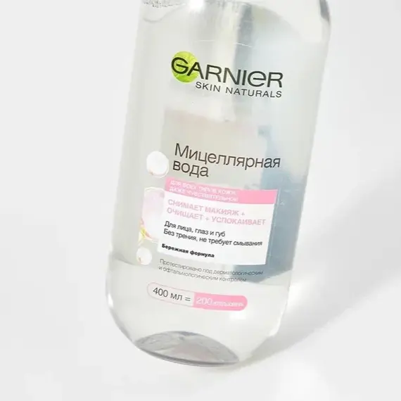 Деликатная формула мицеллярной воды Garnier эффективно очищает, снимает макияж и увлажняет кожу. Мицеллы захватывают и бережно удаляют загрязнения, излишки себума и косметику с кожи лица, глаз и губ без лишнего трения. Средство не требует смывания и подходит даже чувствительной коже. Без отдушек. Одобрено дерматологами и офтальмологами.