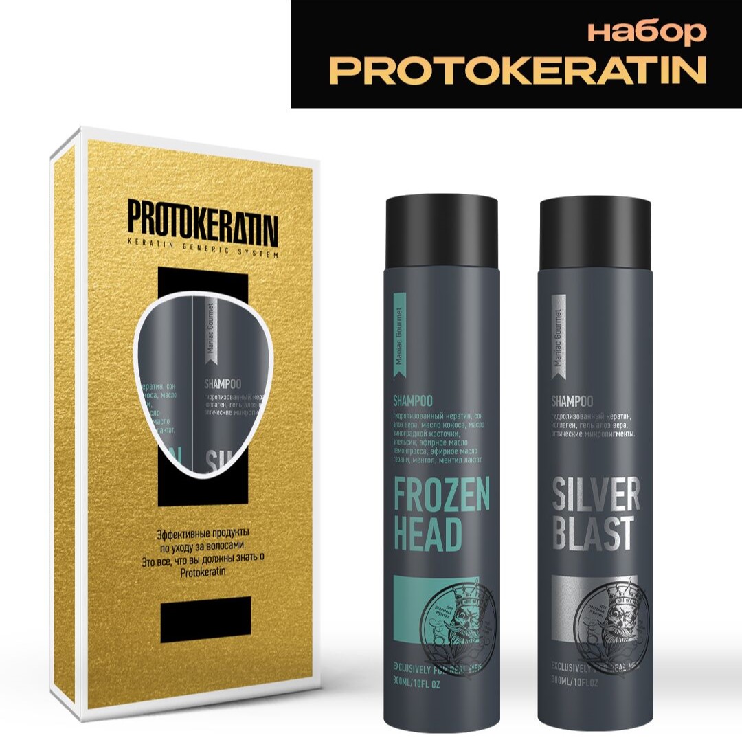 Набор Protokeratin Protomen для мужчин 32/1 (Крио-Шампунь мужской для душа FROZENHEAD Protokeratin FrozenHead shampoo + Шампунь для седых и светлых волос Protokeratin Silver Blast Shampoo)