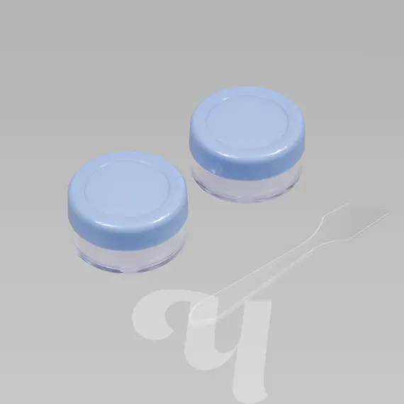 Набор содержит две емкости для хранения различных косметических средств, а также украшений, страз и мелкого декора для дизайна ногтей. Баночки надежно закрываются крышкой. Пластиковый шпатель помогает извлечь продукт. Материал: пластик