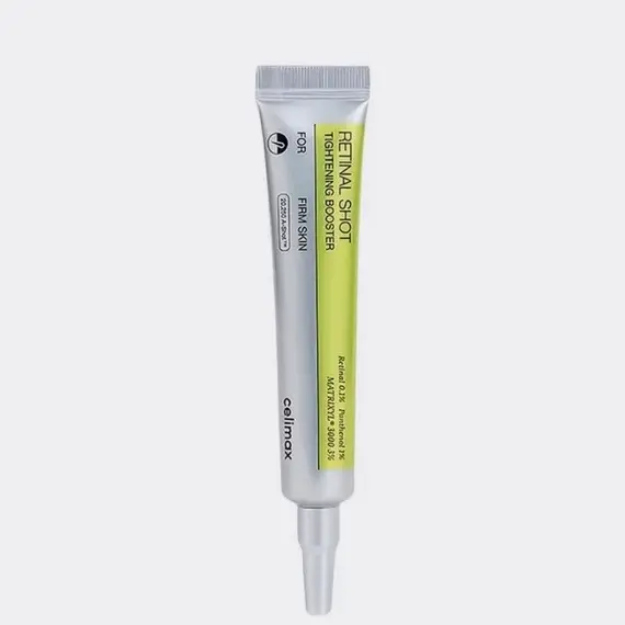 Подтягивающий бустер-крем The Vita-A Retinal Shot Tightening Booster от косметического бренда Celimax обогащен ретиналем и предназначен для активного ухода за возрастной кожей лица. Средство наносится на проблемные участки, предупреждая и устраняя провисание тканей, сокращая глубину морщин, стирая с лица тусклость, следы застойных явлений и постакне. Крем обладает противовоспалительными, омолаживающими, укрепляющими и осветляющими свойствами. Его формула включает 0.1% ретиналя, активизирующего выработку коллагена и эластина, нормализующего секрецию и способствующий лечению угревой болезни. Кроме этого, в состав входит запатентованный комплекс A-Shot с микроиглами, пептиды для интенсивного обновления, пантенол и ниацинамид.