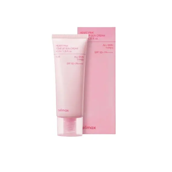 Солнцезащитный крем для лица Celimax heart pink tone up sun cream. Надежная защита от солнца и мягкое выравнивание тона в одном продукте, который способен вернуть здоровый цвет лица при возрастных изменениях, усталости и серости кожи как во время активного отдыха, так и в период пасмурных или рабочих будней. Смесь химического и физического фильтра гарантирует защиту от широкого спектра уф-излучения, предупреждая признаки преждевременного старания, фотоповреждения и ухудшения качества кожи. Нежный розовый оттенок слегка осветляет общий тон, возвращая холеный вид и корректируя легкие несовершенства, синеву под глазами или проявляющиеся вены, а 10 видов гиалуроновой кислоты оберегают от потери влаги, восстанавливая необходимый уровень гидратации и тем самым уменьшая мелкие заломы и признаки увядания, чтобы сразу после нанесения продукта получить гладкий и сияющий финиш без тяжести или необходимости в тональном средстве.