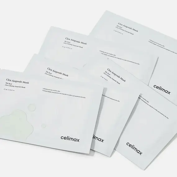 Успокаивающая тканевая маска для лица с экстрактом центеллы Celimax the real cica calming ampoule mask 5 штук по 27 мл