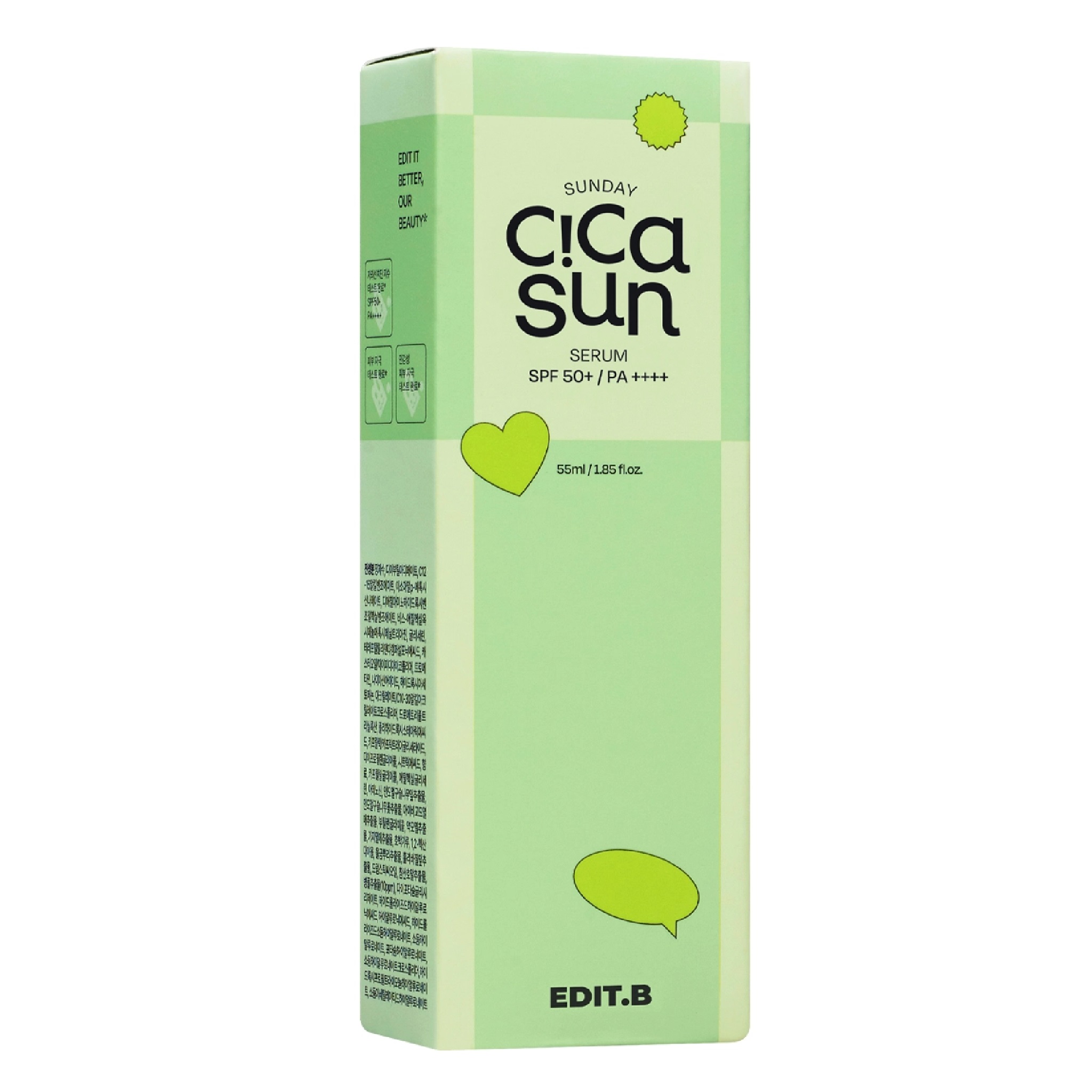 Успокаивающая солнцезащитная сыворотка с экстрактом центеллы азиатской SPF50 Edit.B (Sunday Cica Sun Serum), 55 мл