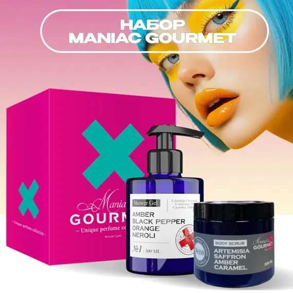 Набор Maniac Gourmet (Гель для душа парфюмированный №5 Апельсин, Черная ваниль, Жасмин, Табак + Гель-скраб парфюмированный №5 Апельсин, Черная ваниль, Жасмин, Табак)