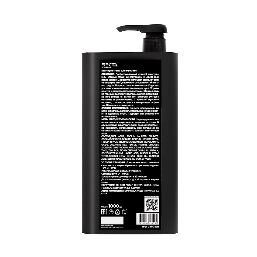 Профессиональный мужской шампунь-гель от Hair Sekta.