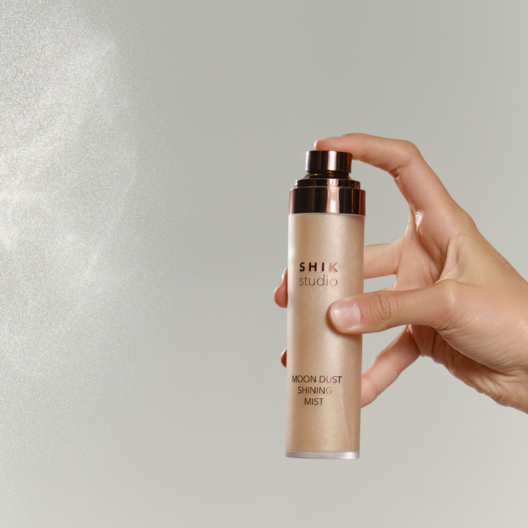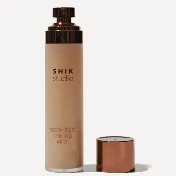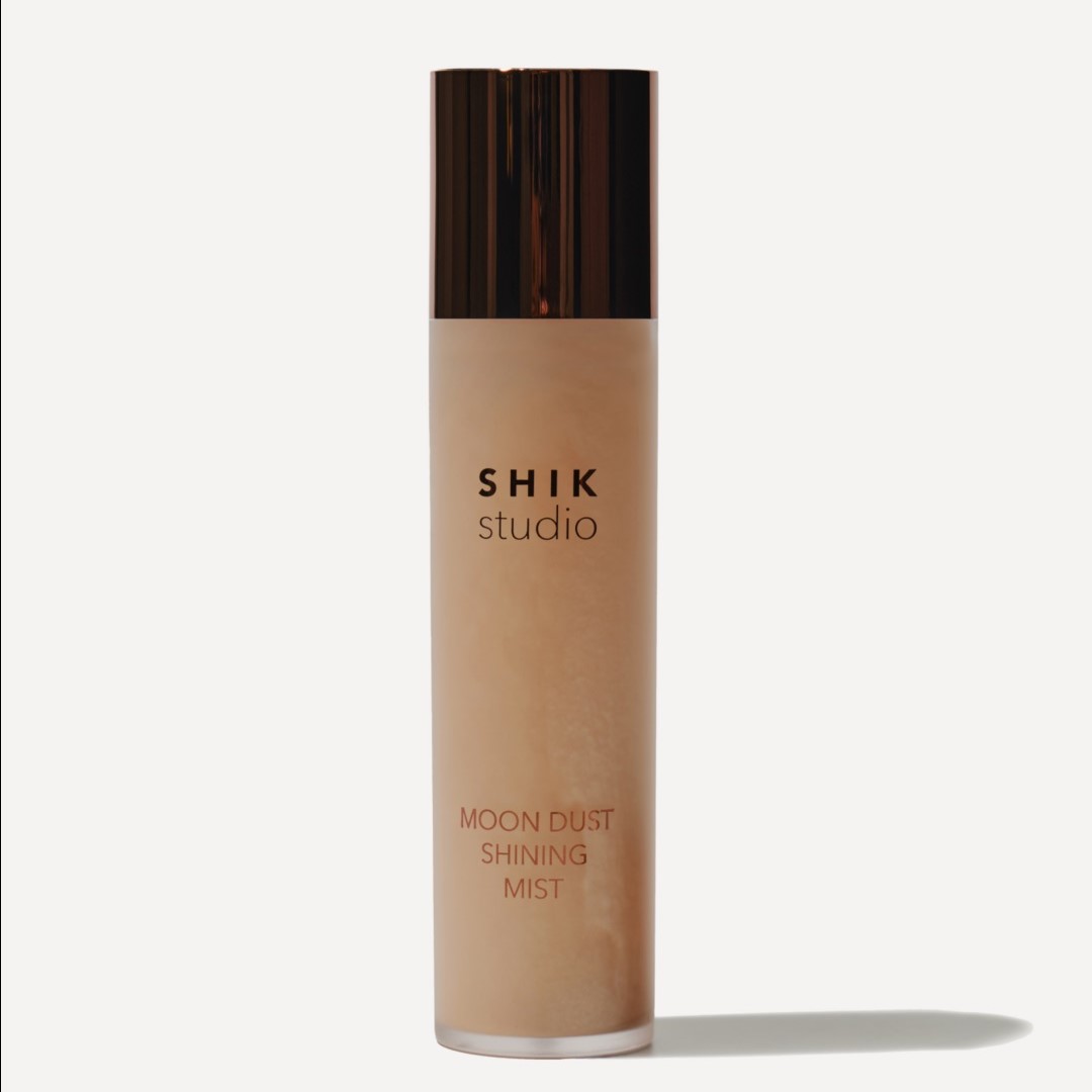 Сияющий спрей для лица и тела SHIK studio moon dust shining mist. Неповторимое сочетание красивого бронзового свечения и увлажняющих свойств. Мельчайшие перламутровые частицы красиво отражают и преломляют свет, придавая атласное сияние. Невесомая текстура сияющего спрея тонко обволакивает кожу, не оставляя липкого слоя. Благодаря мелкодисперсному распылителю продукт воздушно и однородно наносится на все лицо и тело. Сияющий спрей идеально подходит для использования в качестве основы под макияж, иллюминайзера и фиксатора.