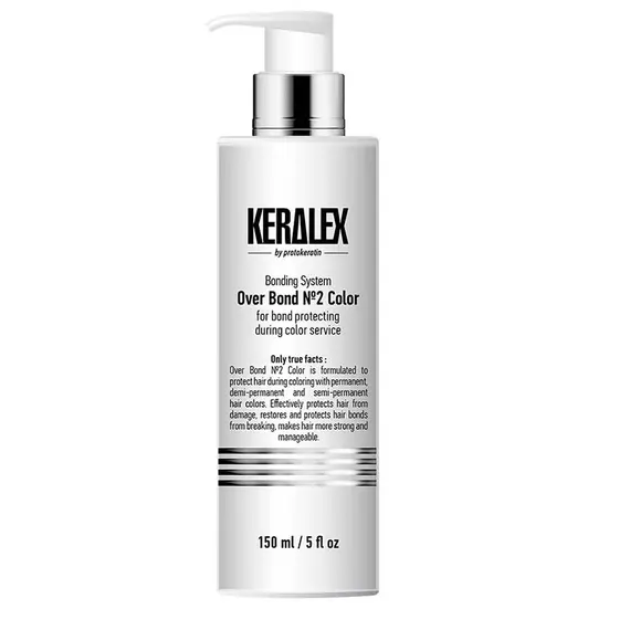 Концентрат-защита №2 Keralex Over Bond №2 Color предназначен для защиты и реконструкции волос при окрашивании и тонировании перманентными, демиперманентными и семиперманентными красителями. При добавлении делает смесь красителя более пластичной. Не понижает показатель окислителя. Защищает волосы от повреждений, сохраняет в целости связи в волосах, делая волосы более плотными и менее разрыхленными. Улучшает депозит и стойкость цвета. Не препятствует созданию холодных и ярких оттенков. Улучшает распределение красителя, препятствуя проседанию. Также защищает кожу головы.