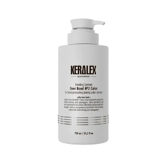 Концентрат-защита №2 Keralex Over Bond №2 Color предназначен для защиты и реконструкции волос при окрашивании и тонировании перманентными, демиперманентными и семиперманентными красителями. При добавлении делает смесь красителя более пластичной. Не понижает показатель окислителя. Защищает волосы от повреждений, сохраняет в целости связи в волосах, делая волосы более плотными и менее разрыхленными. Улучшает депозит и стойкость цвета. Не препятствует созданию холодных и ярких оттенков. Улучшает распределение красителя, препятствуя проседанию. Также защищает кожу головы.