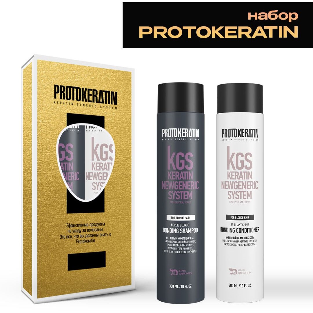 Набор Protokeratin Bonding 28/1 для волос (Шампунь-бондинг интенсивный сине-фиолетовый для блондированных волос Protokeratin Nordic Blonde Bonding Shampoo + Кондиционер-бондинг для блондированных волос Brilliant Shine Bonding Conditioner)