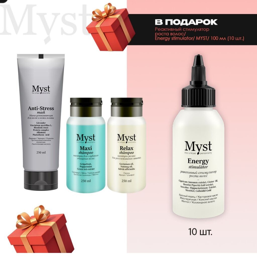 МС21 в подарок Реактивный стимулятор роста волос/Energy stimulator/ MYST/ 100 мл - 10 шт