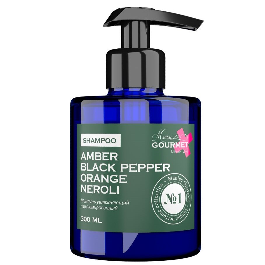 Парфюмированный увлажняющий шампунь для волос Maniac Gourmet Амбра, Черный перец, Апельсин, Нероли (№1), 300 мл