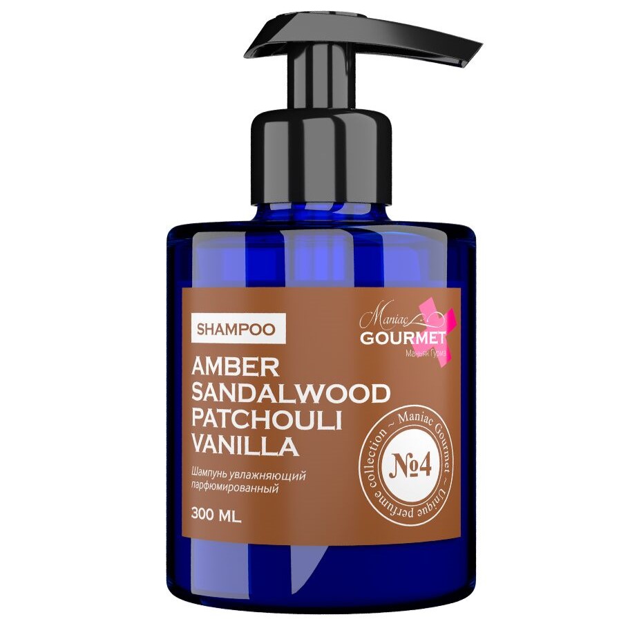 Парфюмированный увлажняющий шампунь для волос Maniac Gourmet Амбра, Сандал, Пачули, Ваниль (№4), 300 мл
