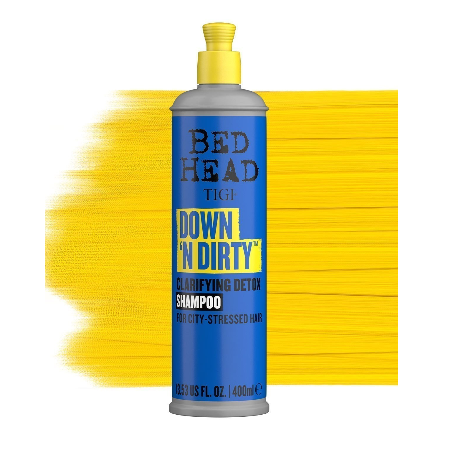 Шампунь-детокс для волос TIGI Bed head down dirty. Волосы ощущаются более здоровыми и крепкими, сильные увлажняющие компоненты, против спутанности волос, облегчает расчесывание, идеально для ежедневного применения. Не вымывает цвет окрашенных волос.Очисти карму! Дай свободу своим волосам с шампунем Down 'N Dirty. Этот очищающий шампунь-детокс, содержащий экстракты целебного растения Эрба Санта и лотоса, бережно очищает кожу головы и волосы, не пересушивая их. Скажи прощай пыли, негативным воздействиям окружающей среды, накоплениям стайлинга, встречай чистые и здоровые волосы!