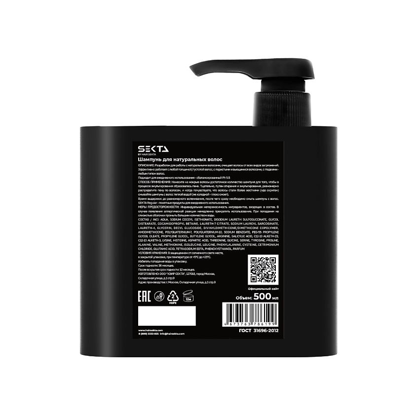 Шампунь Hair Sekta для натуральных волос, 500 мл