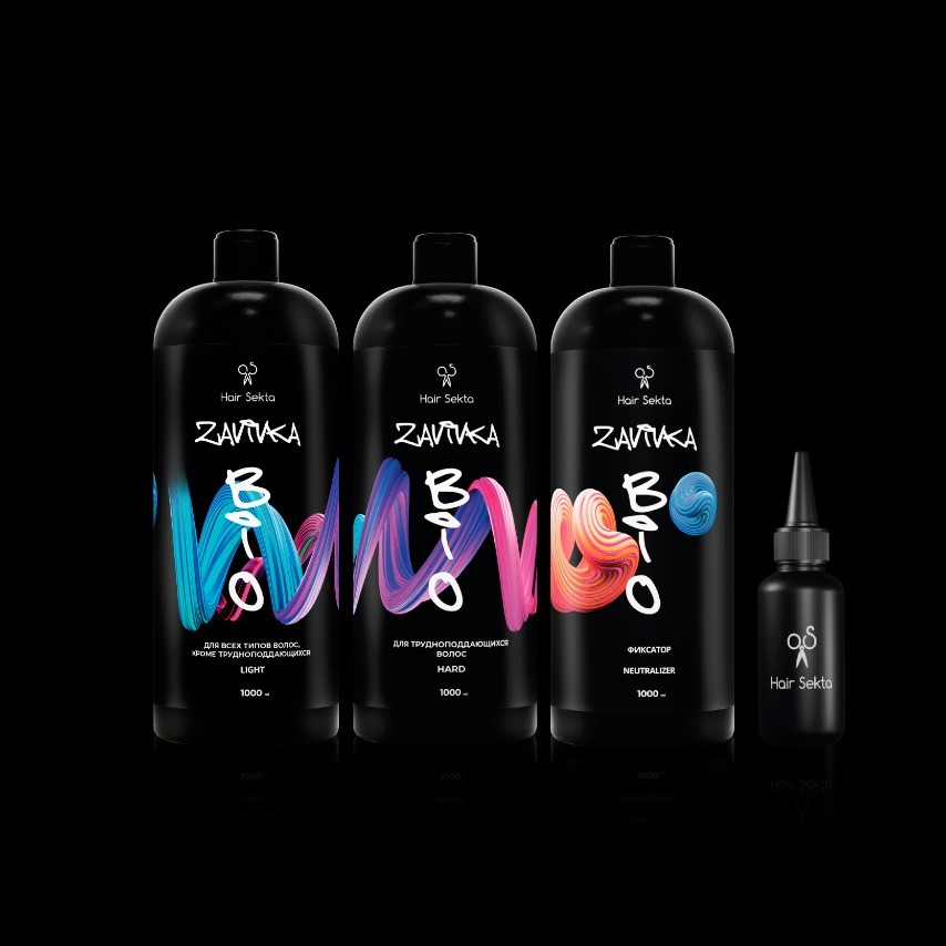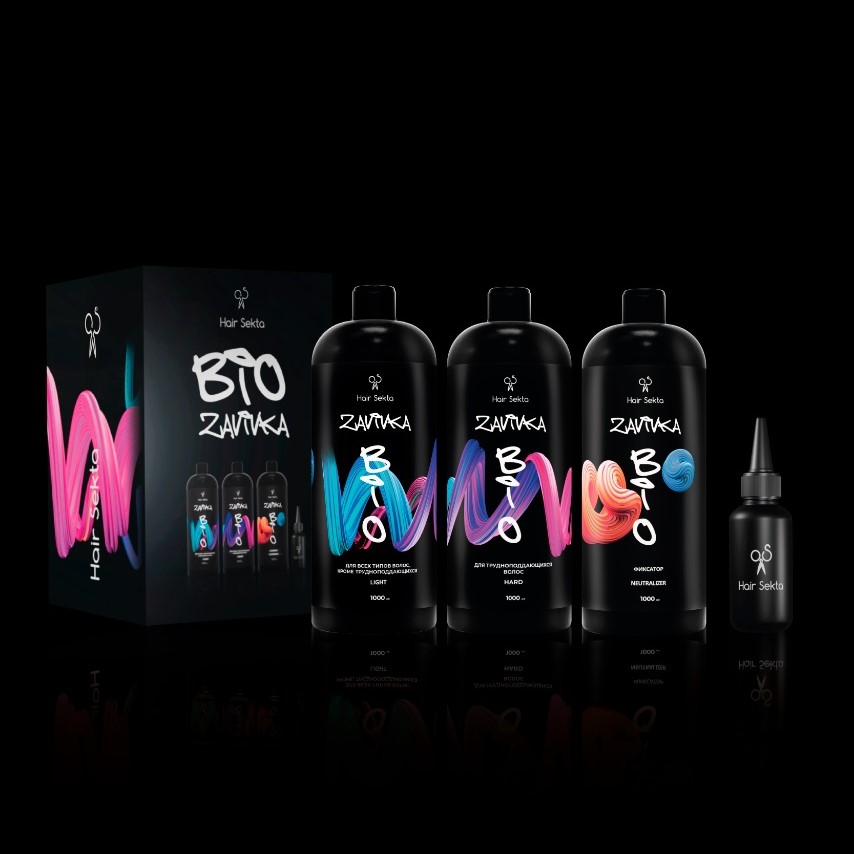 Биозавивка от Hair Sekta: набор для завивки волос (3 штуки по 1000 мл): Light, Hard, Neutralizer/Фиксатор, флакон с аппликатором.