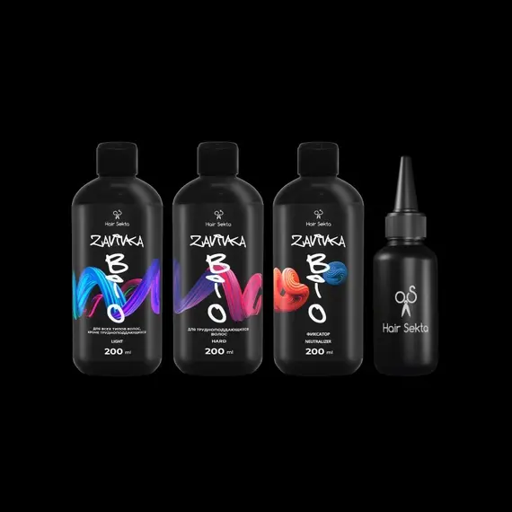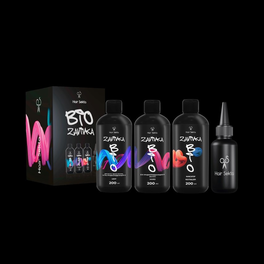 Биозавивка от Hair Sekta: набор для завивки волос (3 штуки по 200 мл): Light, Hard, Neutralizer/Фиксатор, флакон с аппликатором.