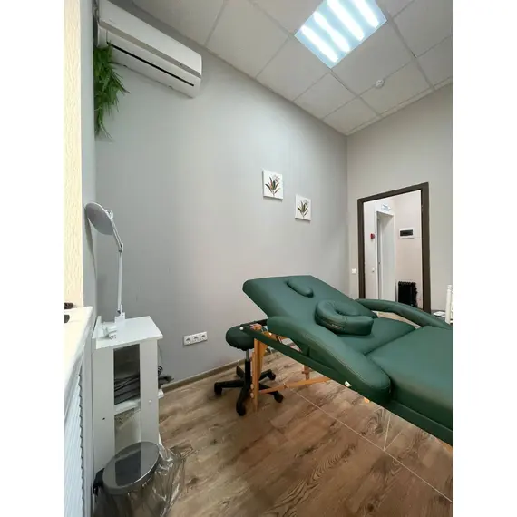 Большое окно, яркий свет в кабинете, есть вода, новый ремонт. Оборудовано косметологическим креслом или кушеткой.