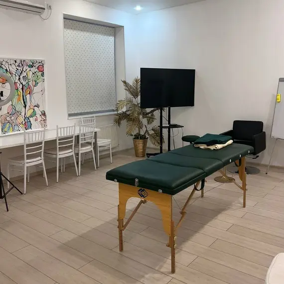 - Оборудование: ТВ-плазма с возможностью онлайн-трансляции, стулья банкетные кьявари, столы, кулер, чайник, музыкальная колонка, кушетки - ставятся в зал по запросу);