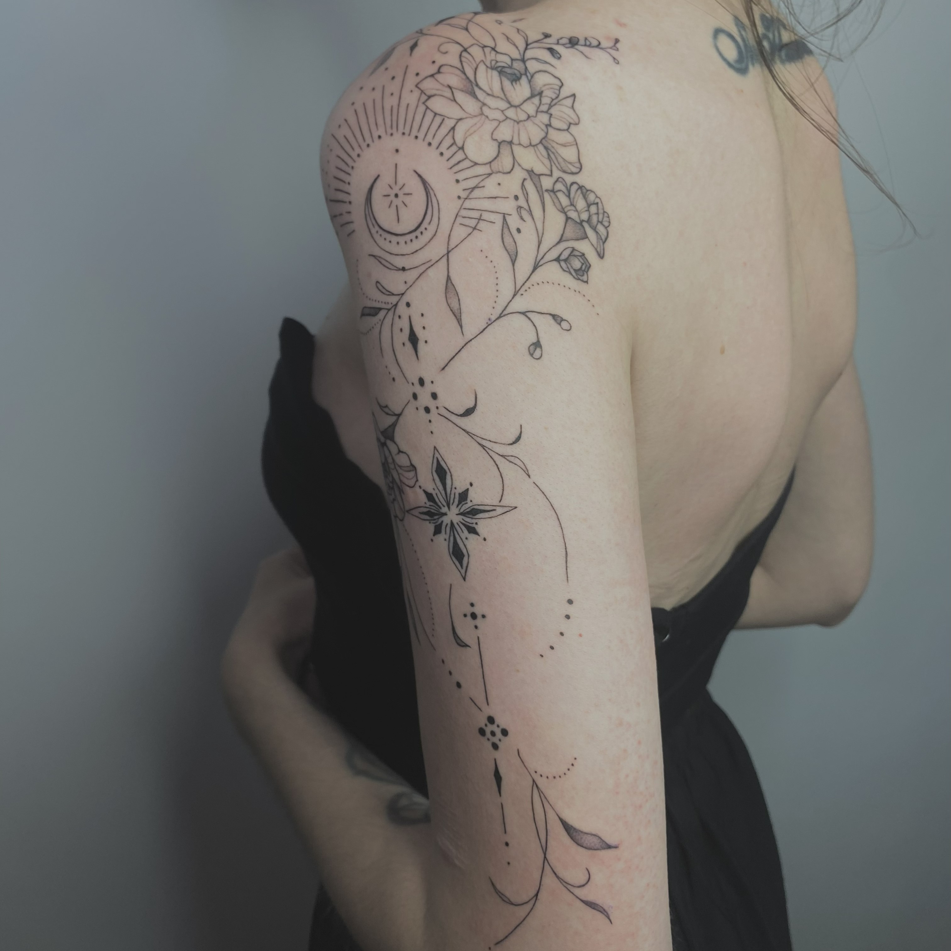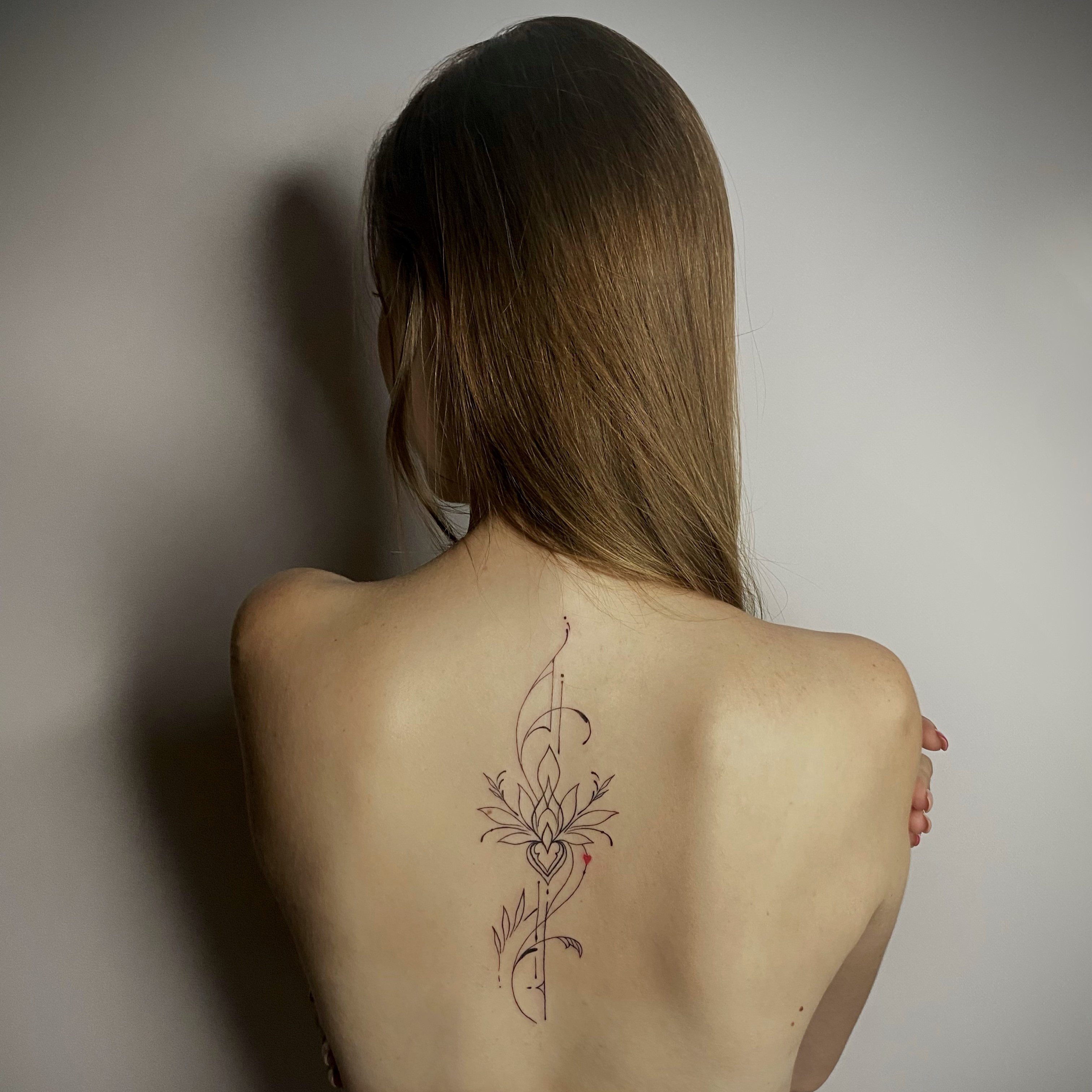 Сложное тату, татуировка большого размера от мастера перманентного макияжа и татуировки Анны Лантратовой