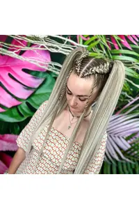 Кудрявый афрохвост — вид причёски, которая представляет собой несколько брейдов, собранных в высокий кудрявый хвост.