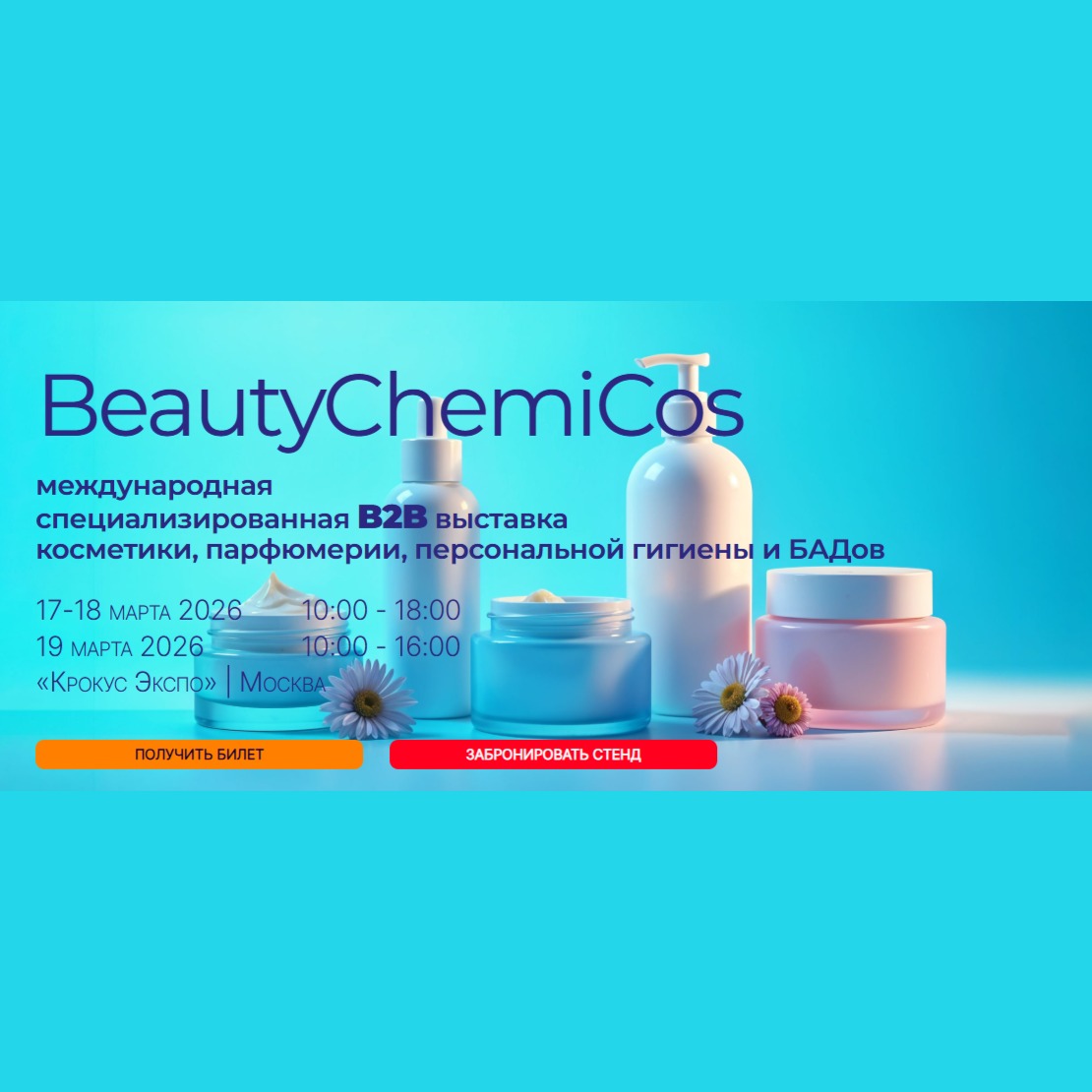 Международная специализированная выставка косметики и парфюмерии, средств гигиены, ингредиентов и упаковки BeautyChemiCos 2026, 17-19 марта, г. Москва
