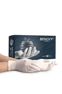Перчатки нитриловые, белые Benovy Nitrile MultiColor (Малайзия; 50 пар)