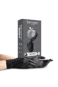 Перчатки нитриловые, черные Benovy Nitrile Chlorinated (Малайзия; 50 пар)