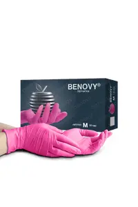 Перчатки нитриловые, розовые Benovy Nitrile MultiColor BS (Китай; 50 пар)